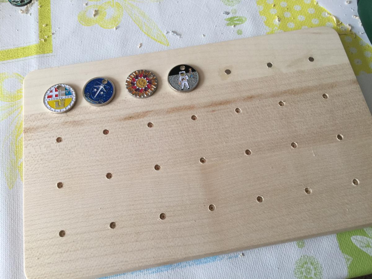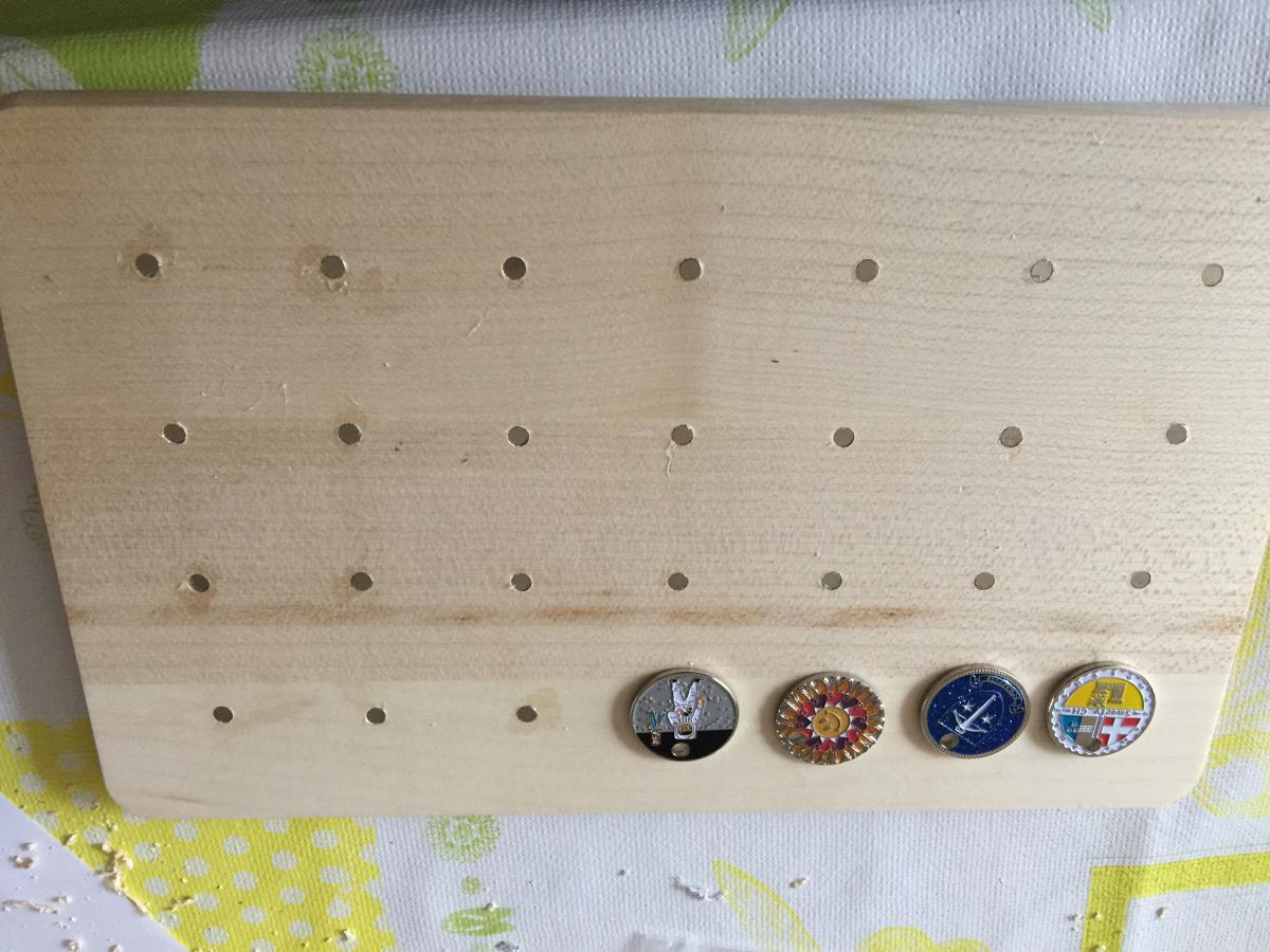 Hallo zusammen Nachdem meine Pathtag-Sammlung langsam anwächst habe ich mir Gedanken über die Präsentation gemacht. Die Displays, die man Internet findet sind mir zu teuer und der Versand aus den USA ist meistens umständlich. Was liegt nah, selber zu bauen? Man nehme ein Holzbrett, kleine Scheibenmagnete (4mm Durchmesser, 2mm Höhe), bohre mit dem Holzbohrer Löcher in das Brett, versenke und verklebe die Magnete und fertig ist das Display. Meine Variante ist quick and dirty, habe etwas unsauber gearbeitet, aber das Prinzip ist klar. Evtl könnte man mit einem 25er Holzbohrer noch grosse Vertiefungen schneiden, in die man dann in der Mitte die kleinen Magnete einsetzt. Statt einen Chuchibrättli kann man ein schöneres Brett nehmen, evt. beizen, anmalen, was auch immer. Die Magnete gibt es hier: https://www.supermagnete.ch/scheibenmagnete-neodym/scheibenmagnet-durchmesser-4mm-hoehe-2mm-neodym-n45-vernickelt_S-04-02-N Vielleicht lässt sich der eine oder andere ja inspirieren. Gruss, Michael